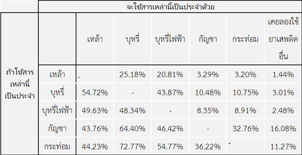 ตารางแนวโน้มการใช้สารเสพติดข้ามประเภทเป็นประจำ (อย่างน้อยเดือนละครั้ง)