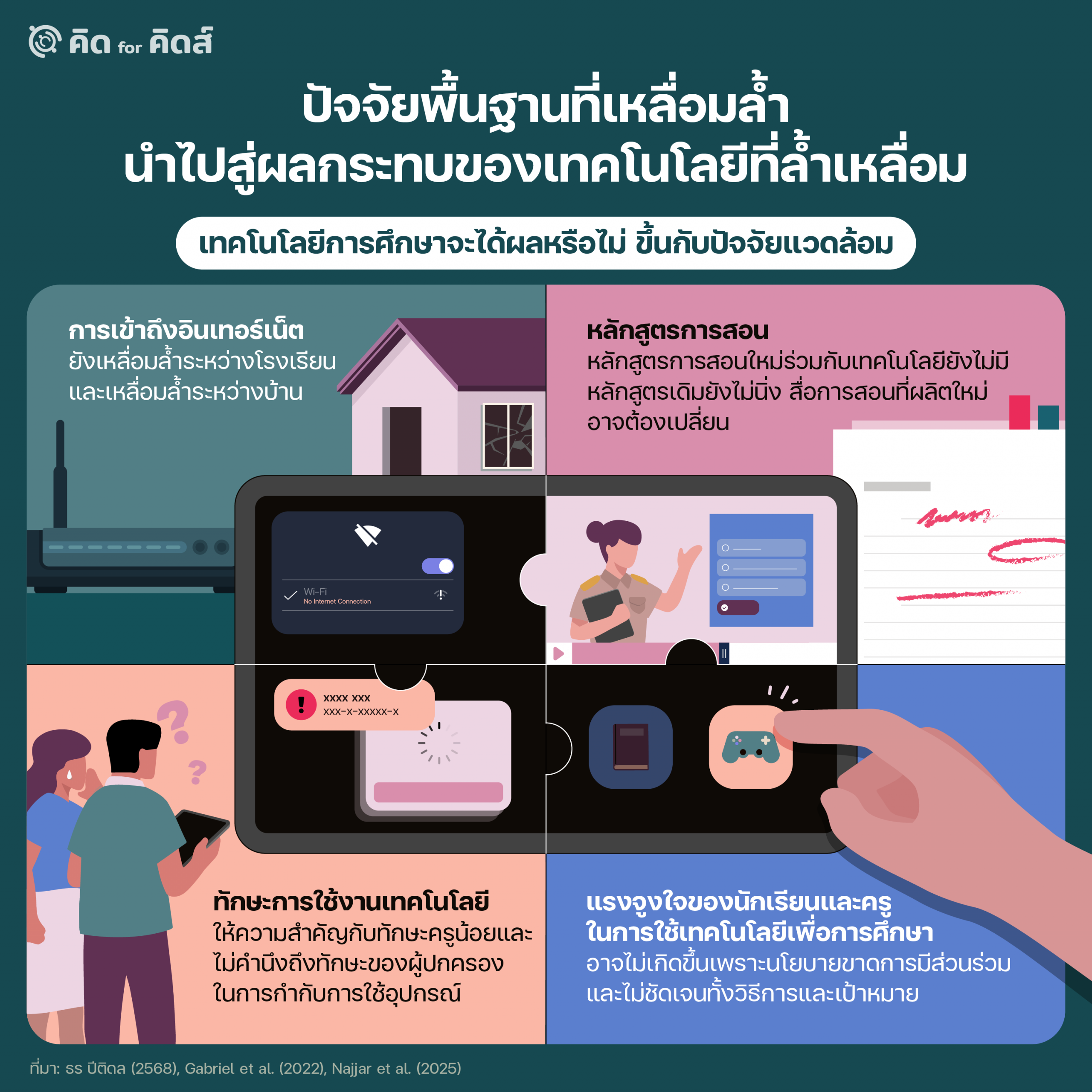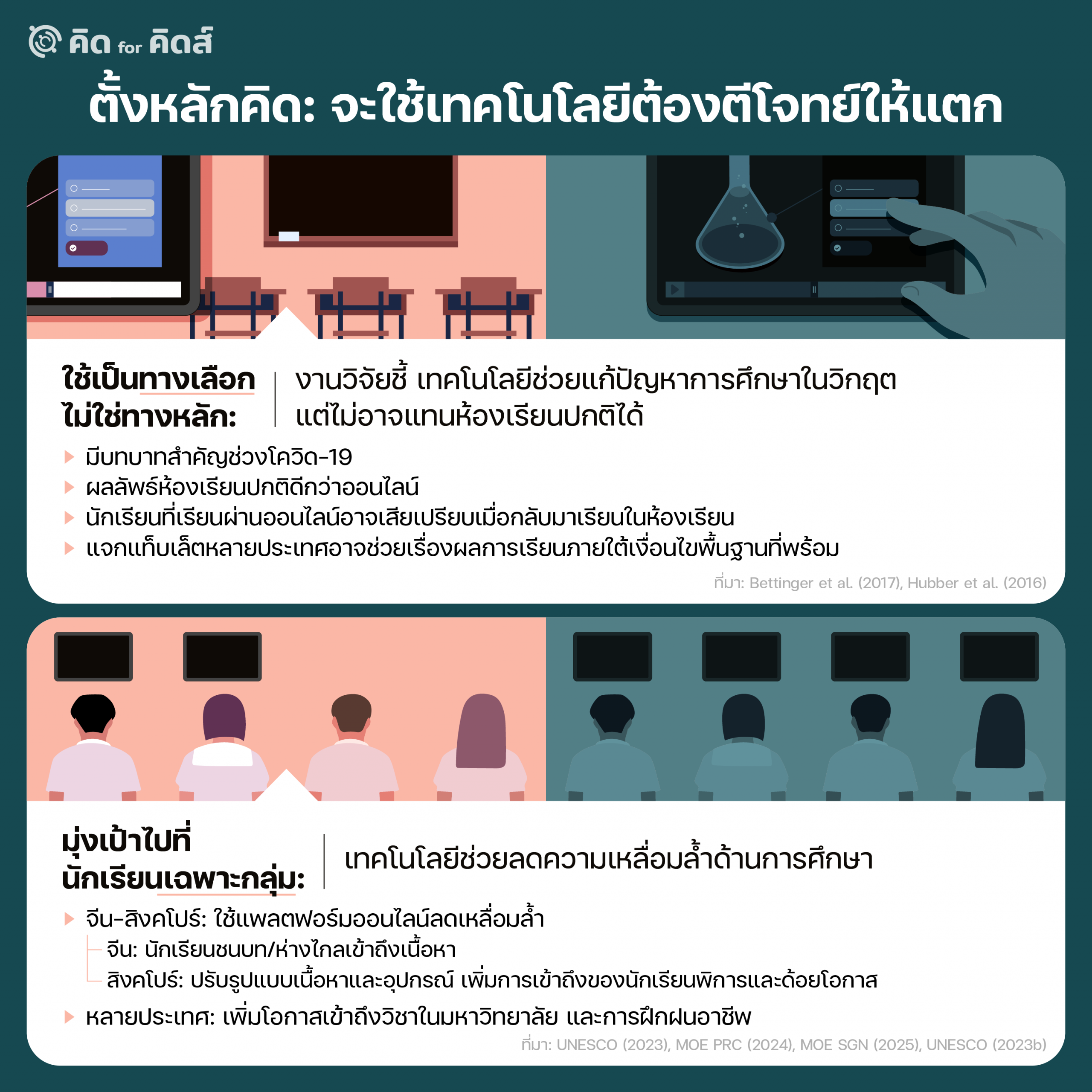 คิด for คิดส์ โดยความร่วมมือของ สสส. กับ 101 PUB และกองทุนเพื่อความเสมอภาคทางการศึกษา (กสศ.) ขอชวนผู้อ่านร่วม ‘ตั้งหลักคิดใหม่’ กับนโยบายเทคโนโลยีการศึกษา ว่าการใช้เทคโนโลยีจะช่วยยกระดับการศึกษาได้จริงไหม ตั้งอยู่บนเงื่อนไขใด ประสบการณ์จากต่างประเทศสะท้อนผลลัพธ์อย่างไร อะไรควรเป็นเป้าหมายของการใช้เทคโนโลยี และหากนำมาปรับใช้ในบริบทของระบบการศึกษาไทย ควรคำนึงถึงเรื่องใดเป็นสำคัญ[1]ส่วนหนึ่งจาก ธร ปีติดล. 2568. … Continue reading